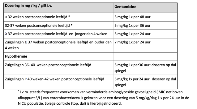 LET OP: gentamicine bij zuigelingen wordt in het UMCG aangepast gedoseerd t.o.v. het kinderformularium: